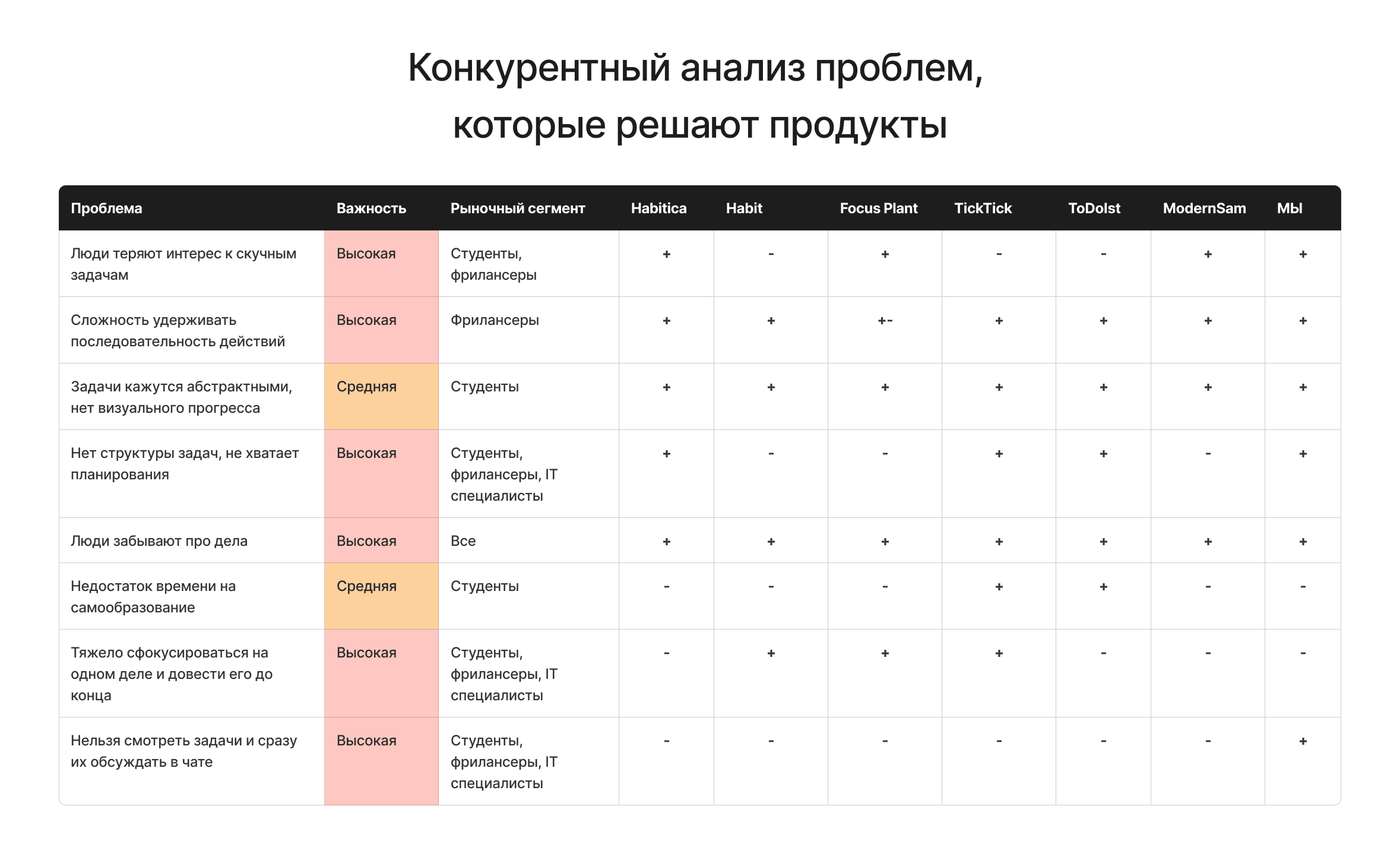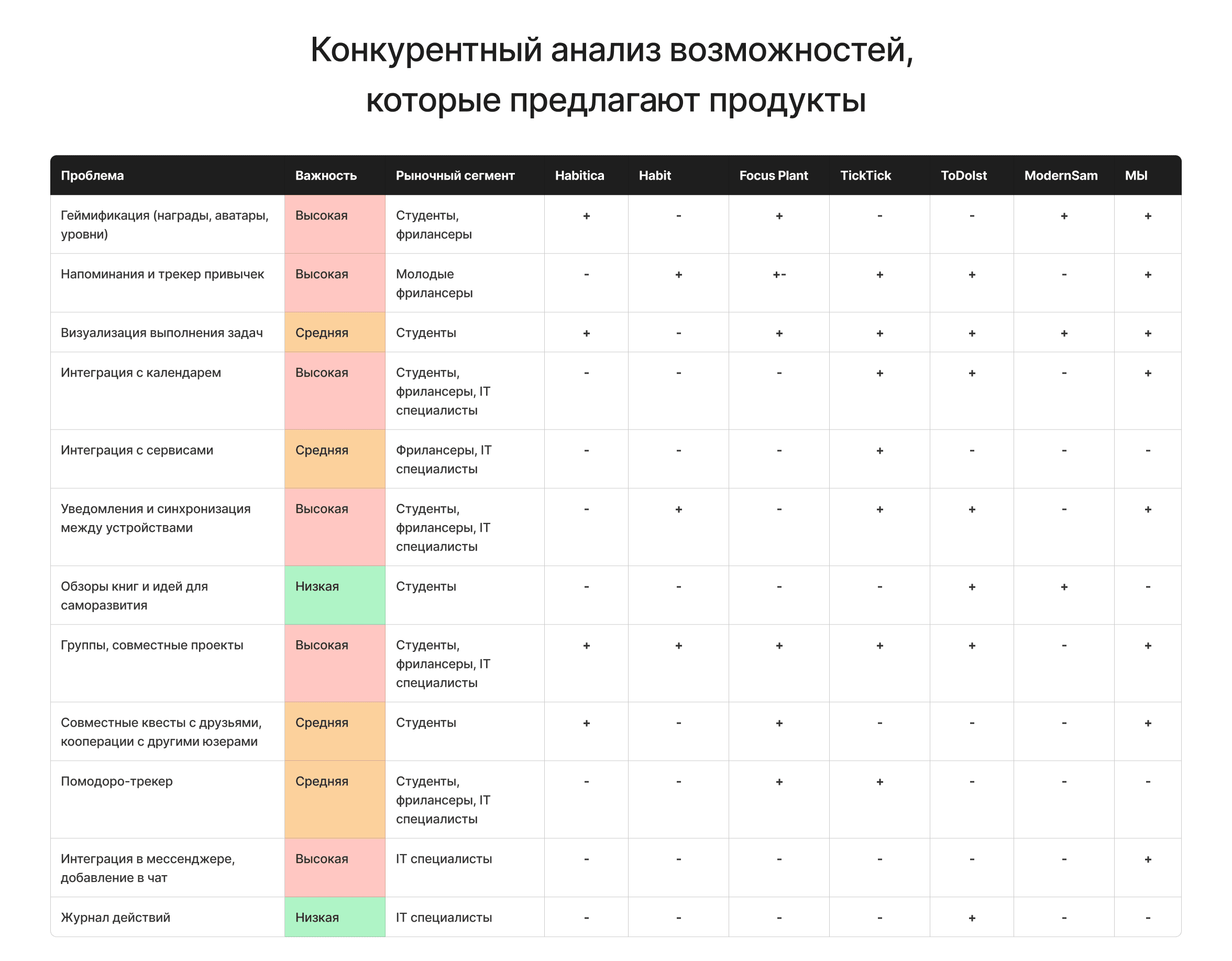 Исследовал рынок таск-трекеров, выявил сильные и слабые стороны конкурентов.