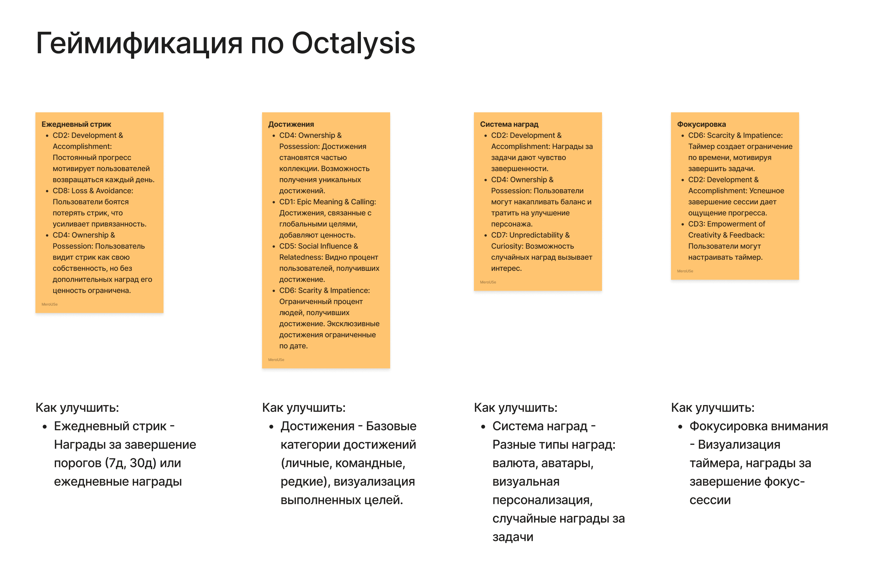Проработать геймификацию с помощью фреймворка Octalysis для выбора ключевых игровых механик